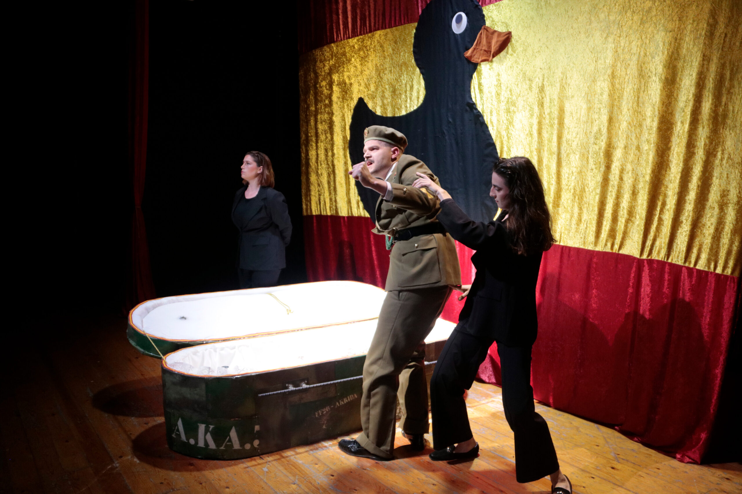 ACN Tarragona – La companyia tarragonina Àkrida Produccions estrena aquest divendres la comèdia ‘Francisco Frasco’ a la Sala Trono, una obra que satiritza sobre el feixisme i l’auge dels extremismes. L’obra pren com a punt de partida la mort del dictador i imagina un final alternatiu a l’exhumació amb un text que combina l’humor, la ironia, la sàtira i el cabaret. “És una obra feta una mica des de la ràbia, una mica des de la por i una mica des de l’esperança de poder riure de com està el món i d’intentar donar-nos un cop de mà entre totes per tornar a jugar en col·lectiu”, ha assenyalat l’actriu Farners Moreno. S’han programat nou funcions de ‘Francisco Frasco’ fins al 19 d’abril, la primera de les quals s’estrena amb entrades exhaurides.