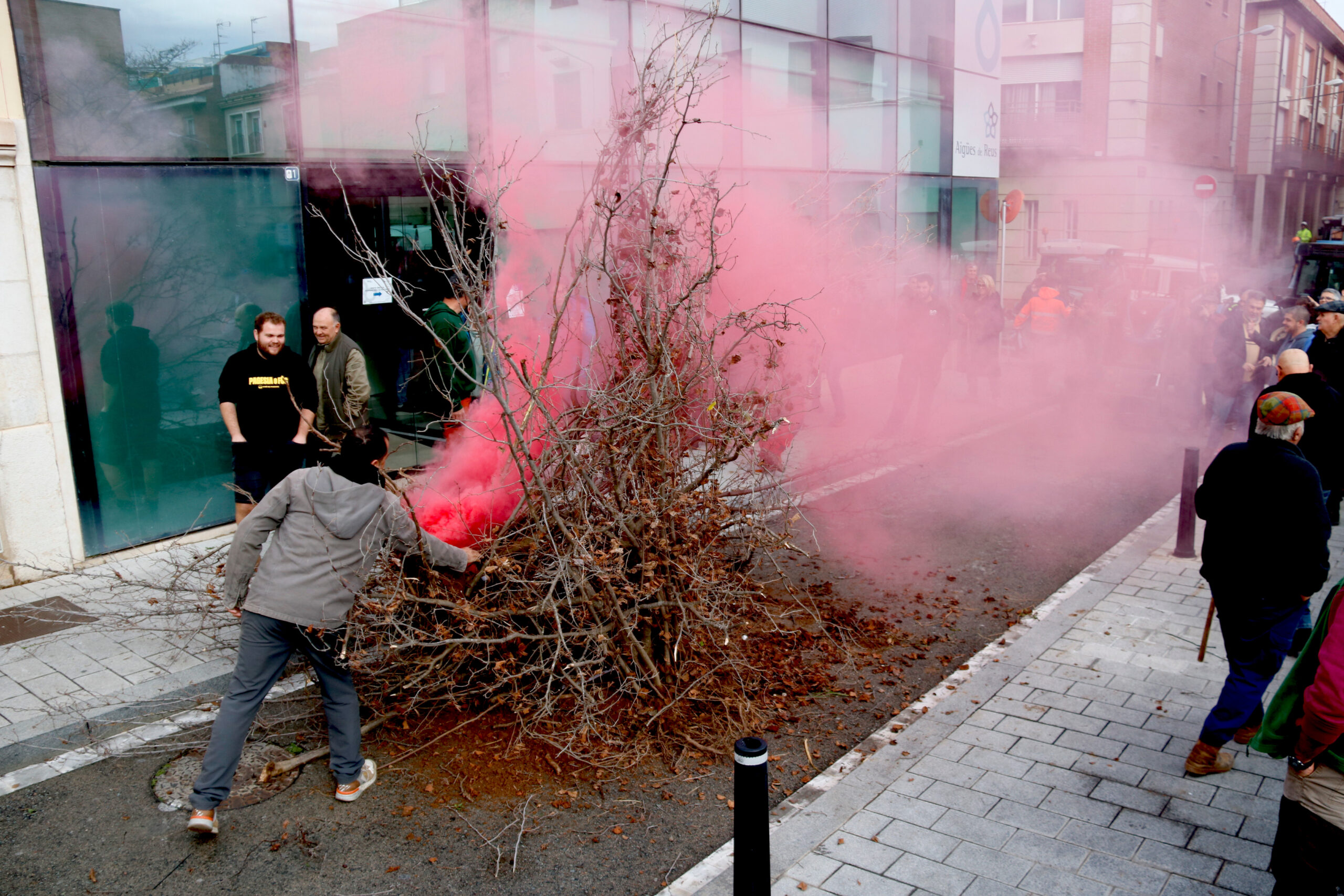 ACN Reus – Una trentena de pagesos del Camp de Tarragona han fet una tractorada aquest dilluns al matí des de Riudoms (Baix Camp) i fins al centre de Reus per denunciar la falta d’aigua que pateix el sector. Unió de Pagesos (UP) ha deixat avellaners morts a les portes de les oficines del Departament d’Agricultura de la capital del Baix Camp i n’ha cremat davant la seu d’Aigües de Reus. El coordinador territorial del Camp de Tarragona d’UP, Sergi Claramunt, ha avisat que encara no han sortit les resolucions de l’any passat vinculades a les ajudes per arrencar els arbres morts per la sequera i ha advertit que no saben si les cobraran. Des del Govern asseguren que s’estan “tramitant”, que depenen del pressupost del 2026 i que es resoldran al febrer.