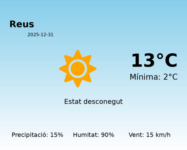 Predicció del Temps per a Reus – 31 de desembre de 2025